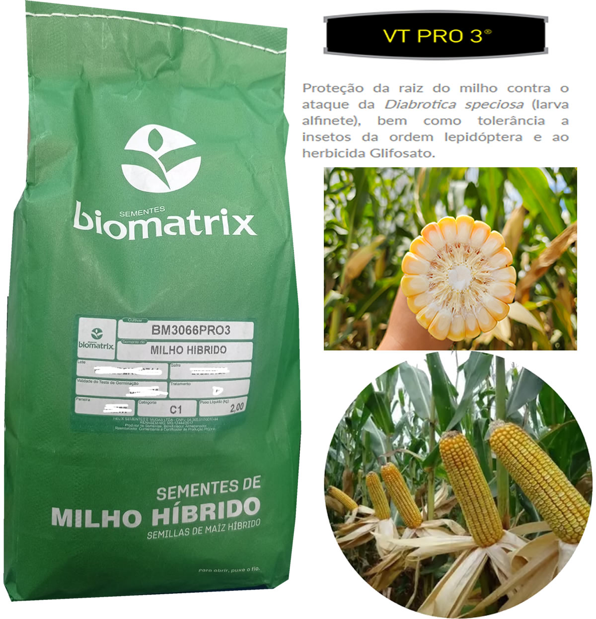 Semente De Milho Transgênico Para Safra BM 3066 com Tecnologia Pro 3 - Tratado com Poncho + Dermacor - Biomatrix